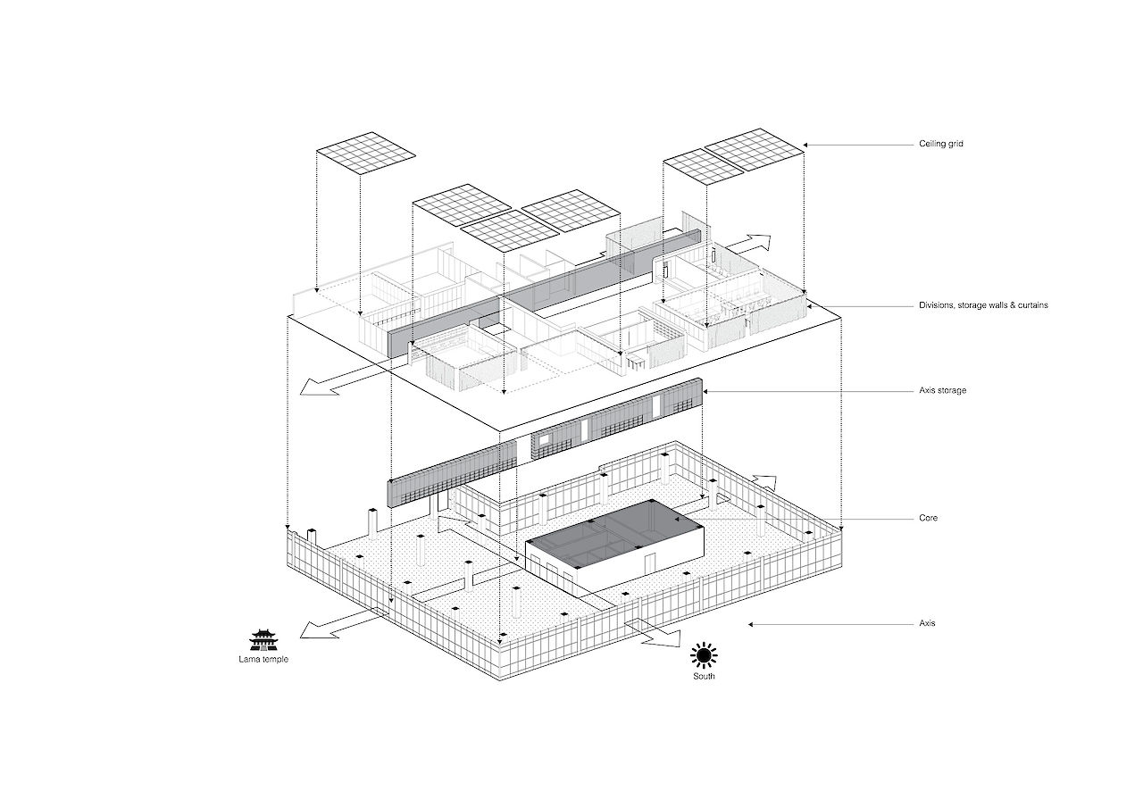 由于叠术只负责概念设计,在设计过程的早期必须找到明确的成本节约策略,以实现其构建最终独特的设计结果。叠术的循环流线“艺术长廊”也对最终的设计概念有很大的贡献。造价也因灯具、家具和设备回收,被降到最低。