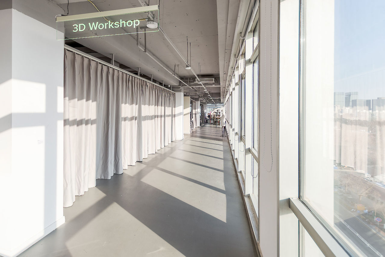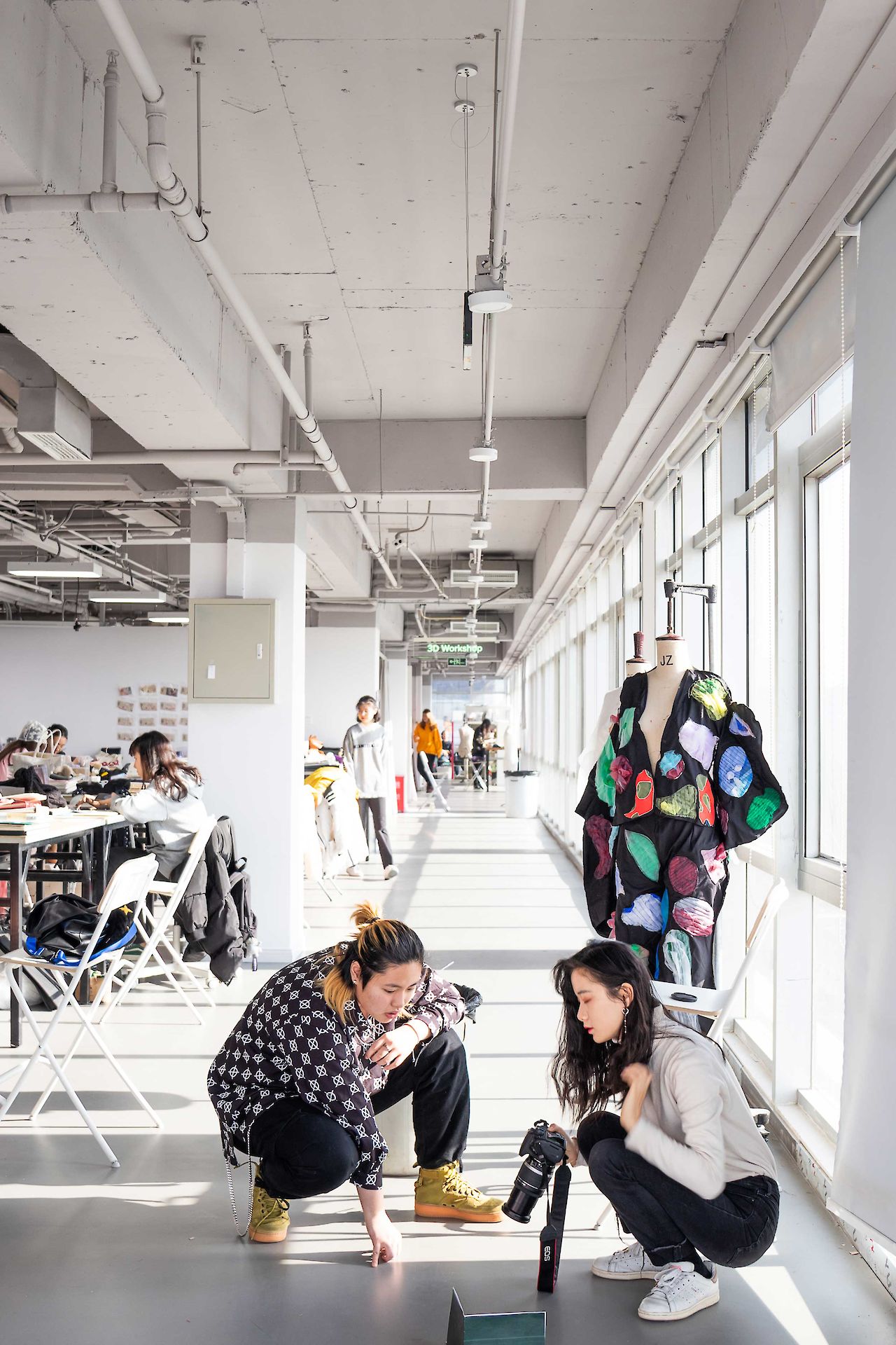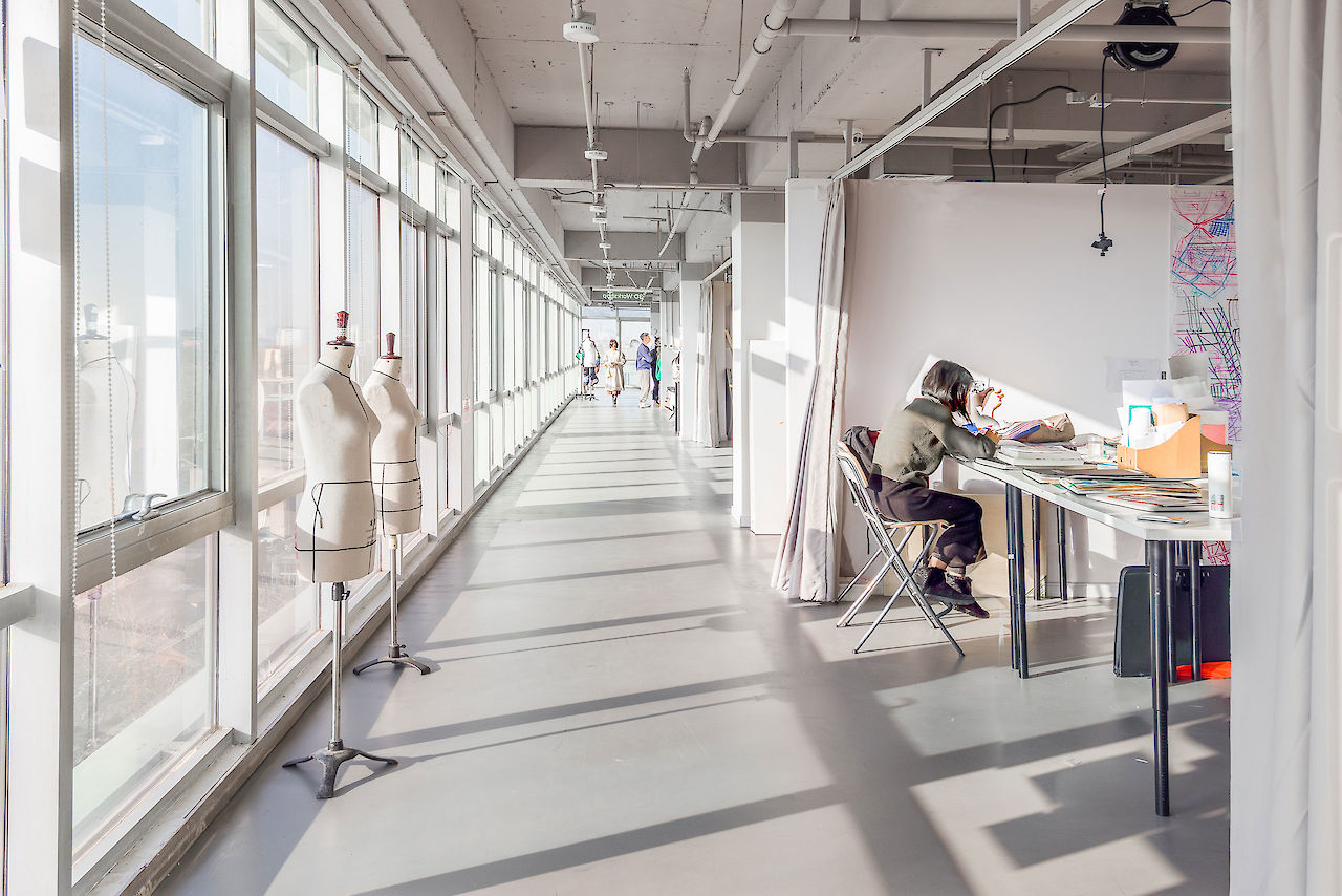 原本黑暗的走廊变成了采光的工作室立面,名为“艺术长廊”,鼓励学生走出自己的工作室,并从周围的同学和作品中找到更多灵感。 “艺术长廊”也可用于快闪展览、时装秀和跨学科工作坊。