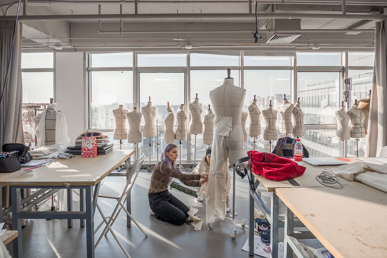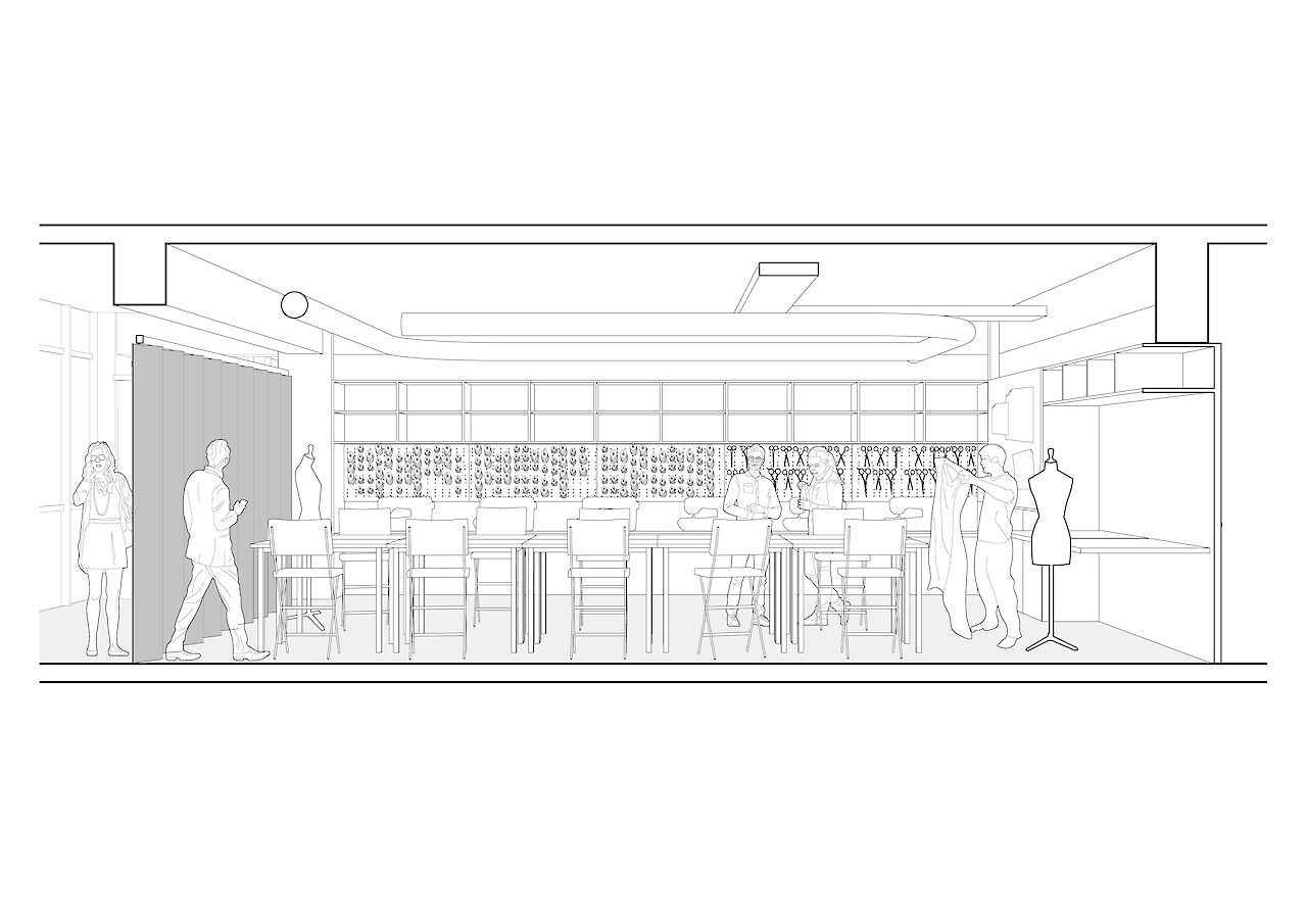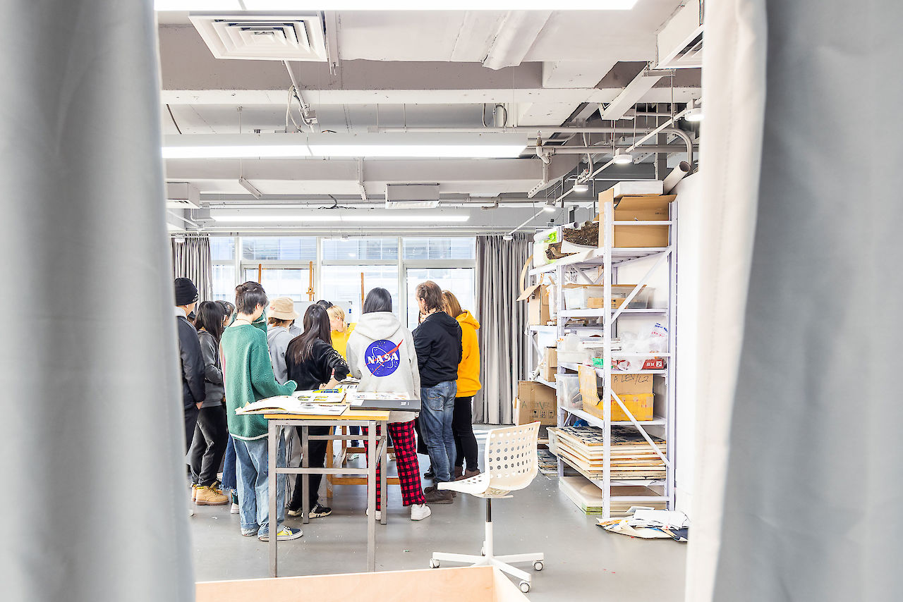 原本黑暗的走廊变成了采光的工作室立面,名为“艺术长廊”,鼓励学生走出自己的工作室,并从周围的同学和作品中找到更多灵感。 “艺术长廊”也可用于快闪展览、时装秀和跨学科工作坊。
