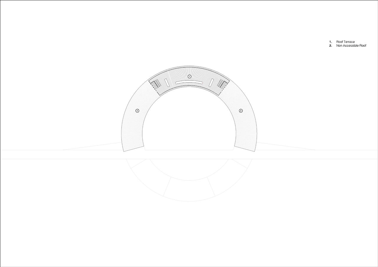 圆形建筑的屋顶是倾斜的,创造了一个完整的环形体验。游客可以从展馆的屋顶观看小龙虾池塘,这是最高的视角,但也成为倾斜圆圈下方小龙虾养殖过程的一部分。