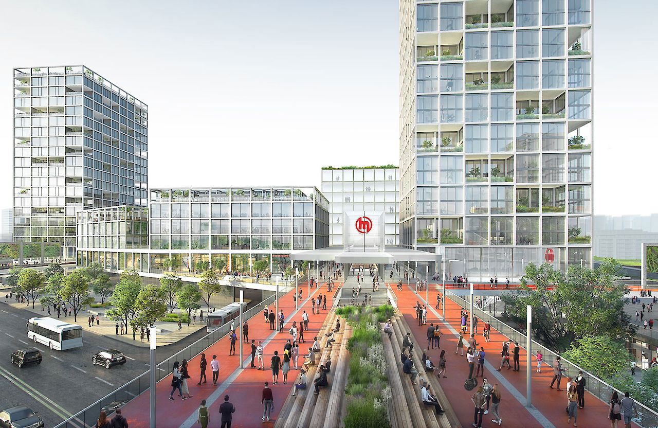 另外,主要人行流线通过“TOD步行环线”在二层连接了三个步行天桥。方案把地铁和公交站连接到每个地块的中心,从而创造出了一个宜人的步行环境。