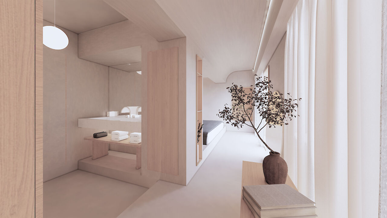 通过浅色饰面板、木材质以及曲线和新型元素,叠术建筑营造了一个平和且安静的环境,使Loft公寓更加舒适温暖。