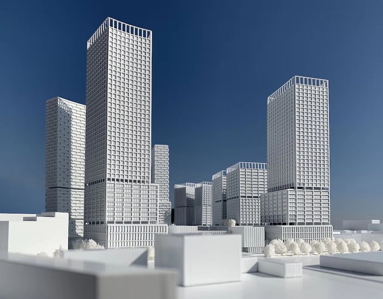 高层建筑放置到场地的外围,场地的中轴线上则是低层建筑,以建立一个多层次连接并适合聚集人群的公共空间,最终为工作和生活创造一个鼓舞人心的环境。场地中轴线低层体量在高密度开发区内创造了一个公共“园区”领域,并定位了研发展示单元、零售亭、体育设施等功能,周围环绕着一个下沉的庭院、桥梁、露台和海绵城市。推台式塔楼的绿色露台提供了一个健康的工作环境。