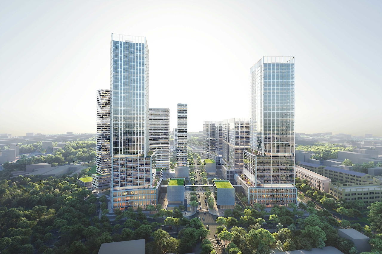 叠术为深圳龙华旧工厂区的总体规划综合体项目提议了一个“园区”的概念。这个项目将成为地标性工业项目,并且大多数入驻此区域的企业都与工业、办公和研发相关,此项目也融合了零售、住宅宿舍、体育设施、幼儿园和公园等。总体规划定位为一个TOD 项目,与地铁站和城际汽车站直接连接。
