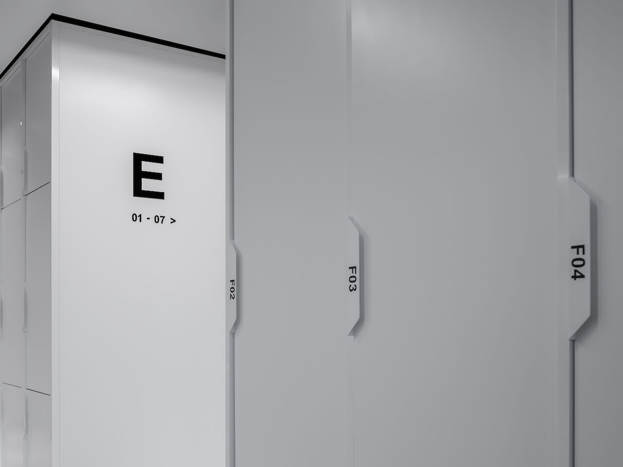 The cabinets are tactically placed to divide the 1000 square meter interior into smaller offices, a reception, meeting rooms, event space storage and a workshop space. The reception provides access to two companies at once with two separate reception desks. Walking through the entrance door of the client’s office immediately provides the visitor with a product introduction of the company.