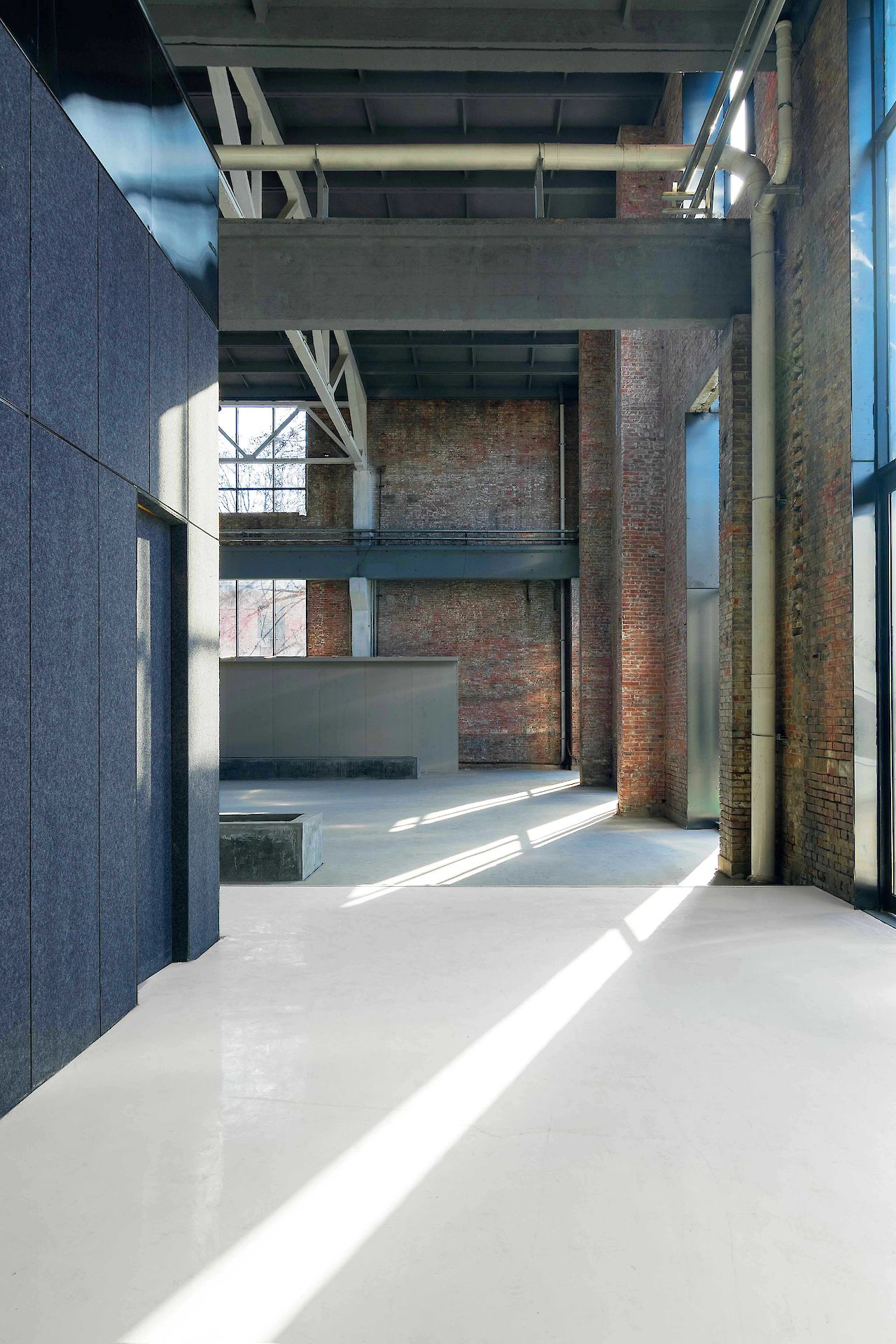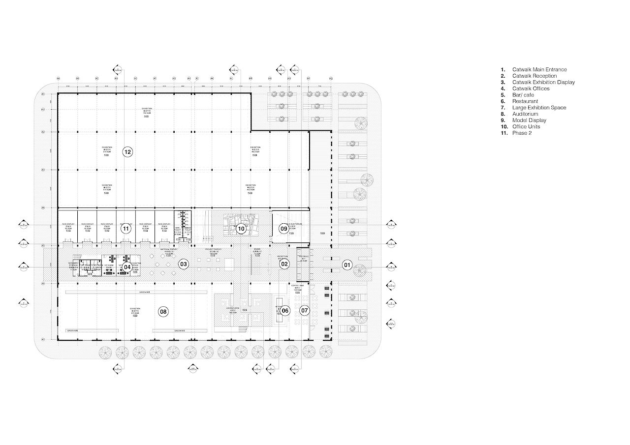 For the interior Superimpose proposed a wide central ‘catwalk’ which hovers above the existing concrete floor. This catwalk spans from the East entrance to the West of the factory and connects the entire exhibition program. At the same time the raised ‘catwalk’ provides a smart solution to hide all the ductworks and cables without excavating into the existing floor.