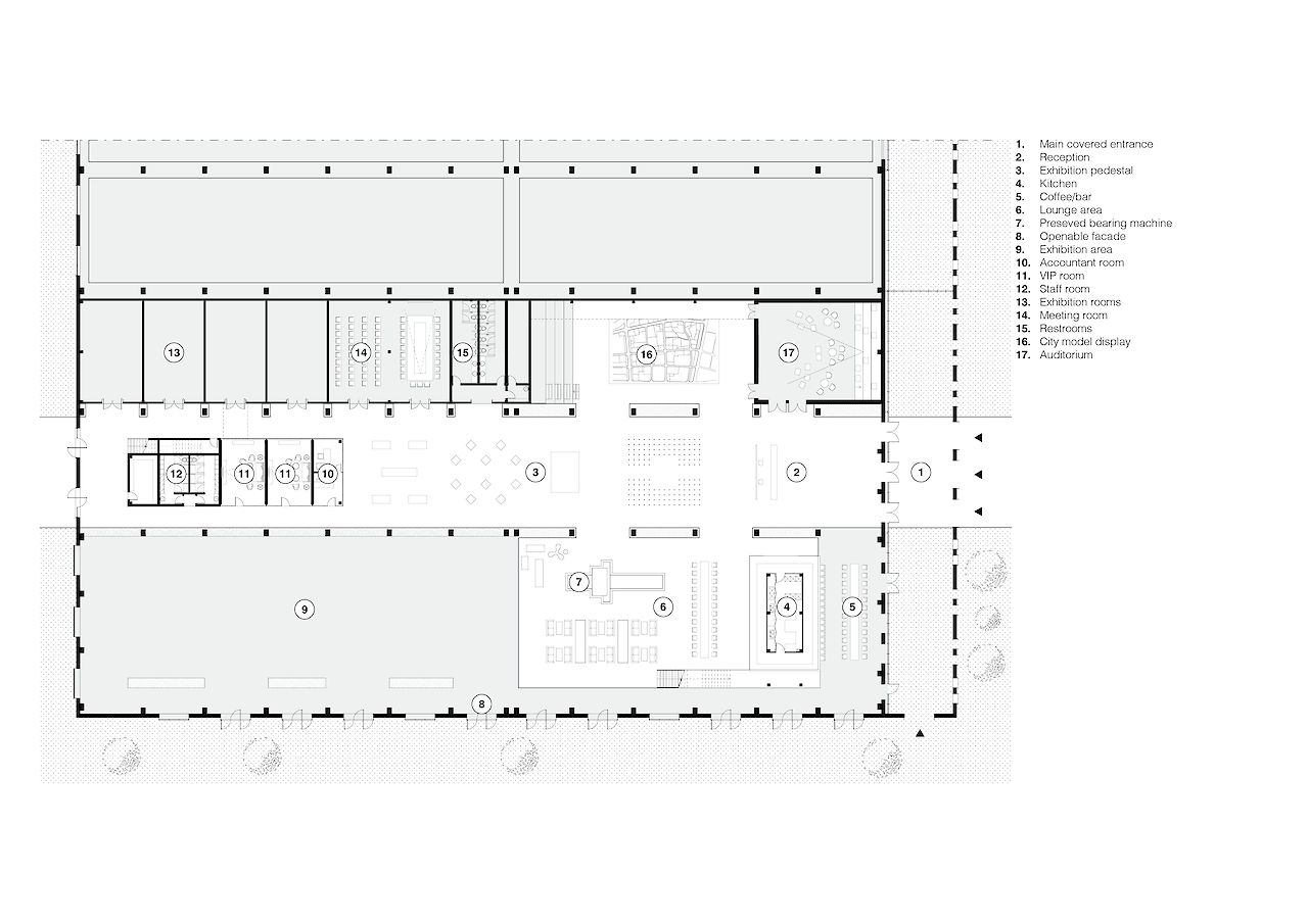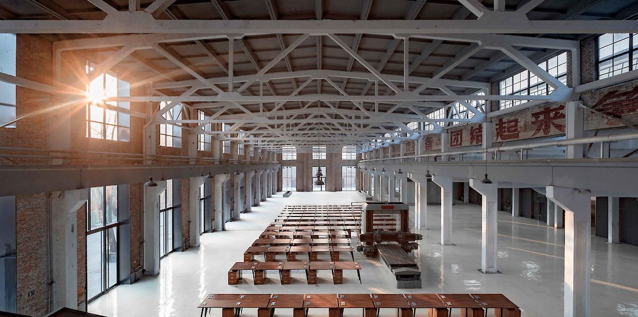 As part of this ‘cultural hub’, Superimpose regenerated the first and the largest of the former factories into the ‘Changzhi City Expo’, which will host as an exhibition center, a government-meeting center, office spaces and an auditorium. Superimpose’s main design strategy for the ‘City Expo’ was to investigate the original distinctive elements of the factory and insert minimum architectural interventions to restore the spatial quality and simultaneously provide the required programmatic functionality of the exhibition.