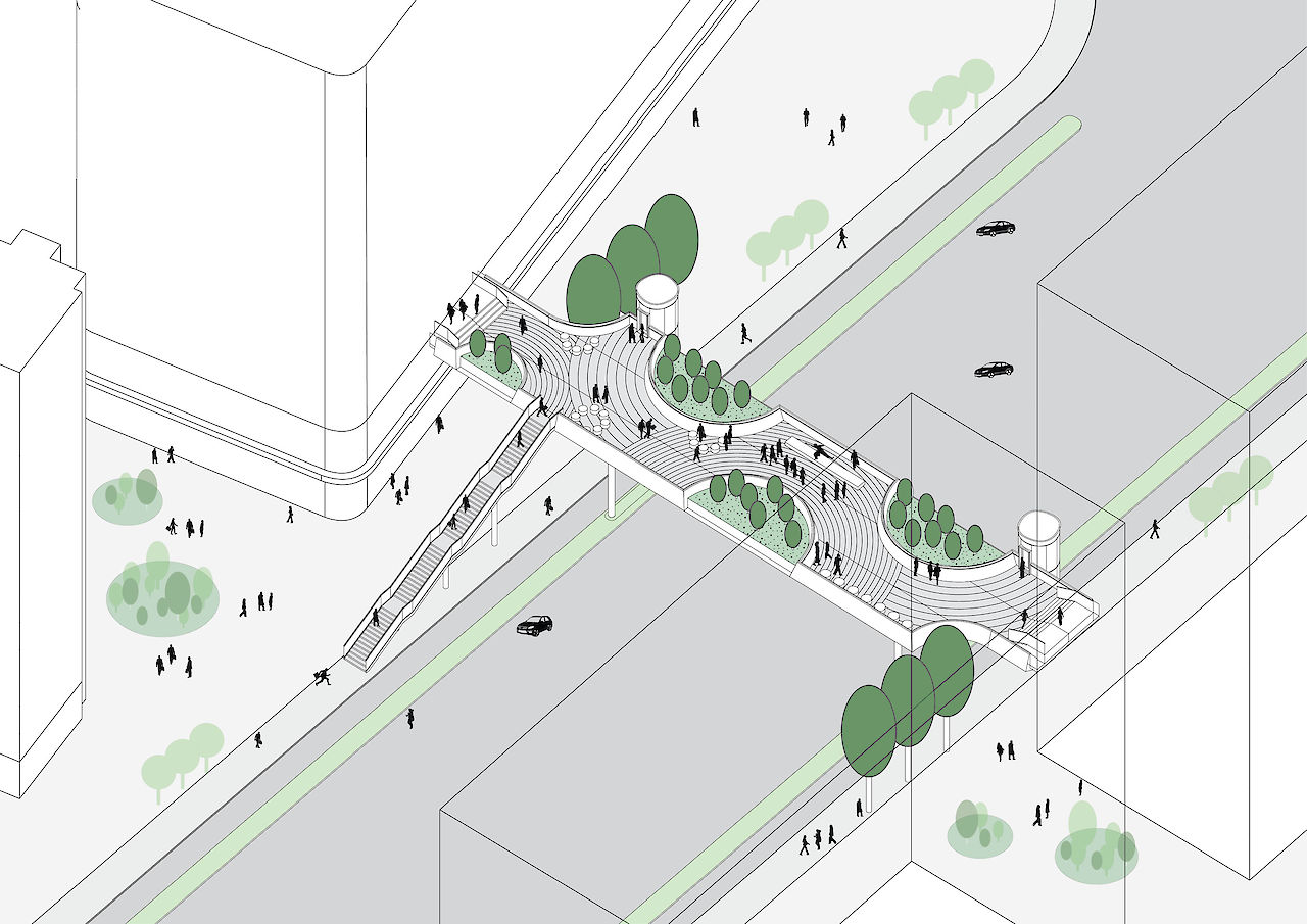 The bridge groups have different designs but share simple structural and circulation principles, keeping the project within budget. Every bridge group refers to its own season by unique spatial arrangement, circulation strategy, colors, vegetation typology, materials, and shape. The balustrades of the bridges play a special role in the spatial experience and appearance of each bridge. The bridges’ main purpose is to connect efficiently. Simultaneously they provide places where the people can stay, communicate, enjoy greenery and relax.