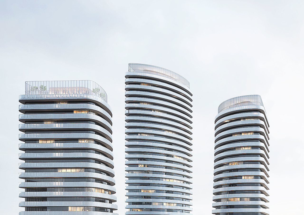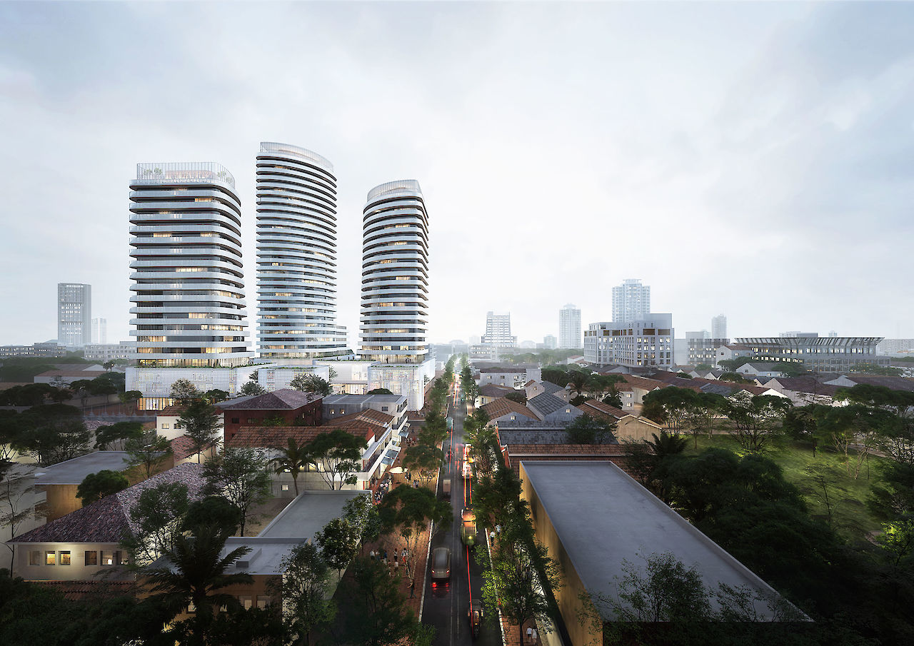 Superimpose designed the ‘Phnom Penh Curve’ to be a reflection and re-interpretation of its direct urban surroundings. Local architectural characteristics such as the curved balconies, façade perforations for ventilation, the integration of green, and attention to human scale are reinterpreted and integrated in the design. The site constraints allowed for 100,000 square meter of floor area. From massing studies Superimpose concluded that in order to respect the surroundings, it would be better to build less and lower than allowed.
