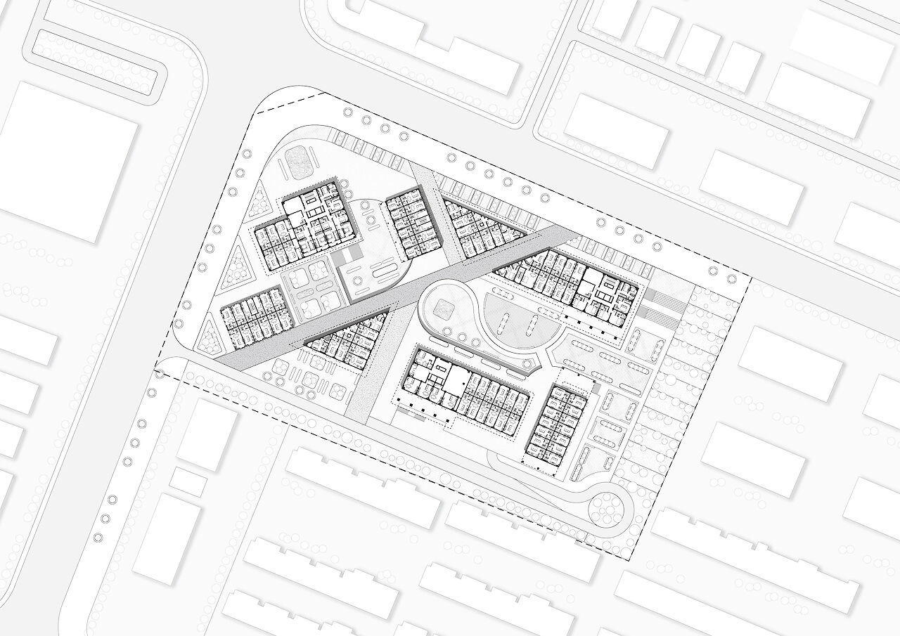 The plan layout intentionally opens up to the surrounding sites with schools, a hotel, cultural hubs and hospital; The residential towers have been rotated, shaped and positioned to increase uninterrupted views out from each single living space while simultaneously orientating each apartment to maximized sunlight exposure; Light and bright materials have been used to contrast with the dull surrounding developments; A loft-concept has been applied in order to achieve more living space per square meter and a variety of unique balconies have been added to each residential unit in order to provide identity to the tower and valuable outdoor space to each inhabitant and unlike other nearby developments. Unlike the majority of developments with balconies, this developer has agreed with providing strict rules on how inhabitants should remain to use their balconies as outdoor space.